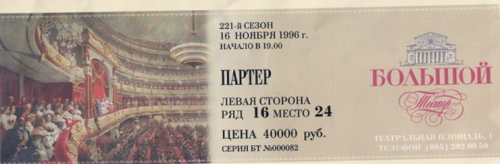 ボリショイ劇場入場券。