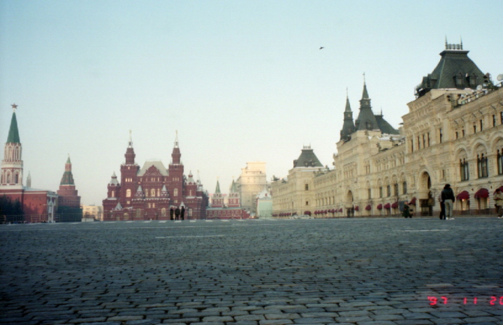 赤の広場近くで。 |