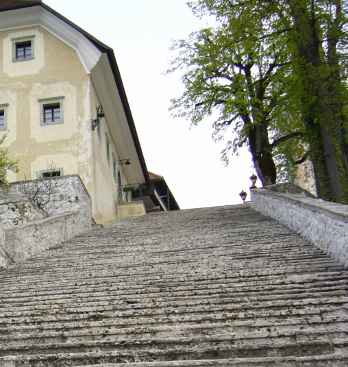 急な階段を上り、
