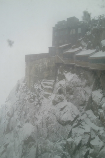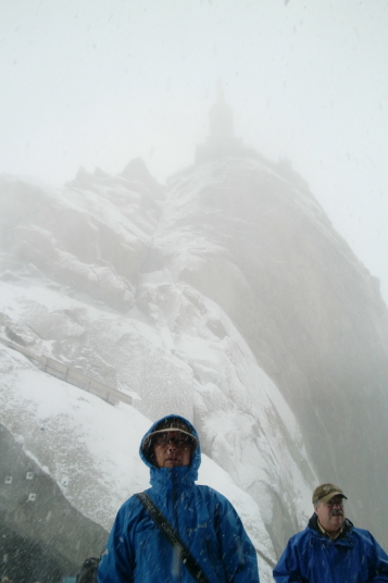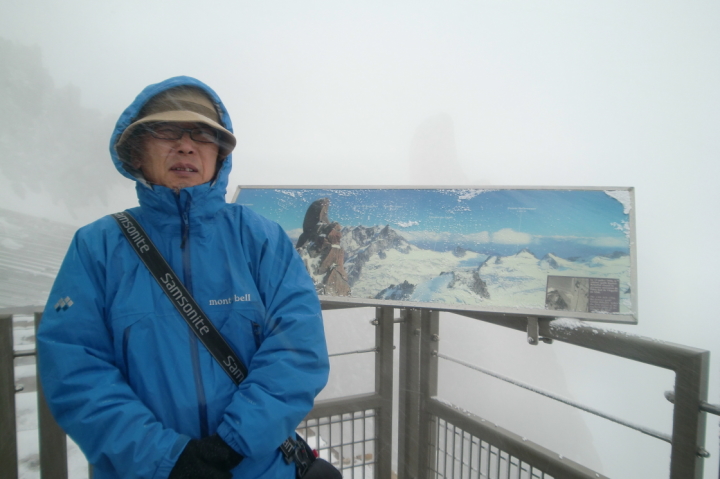 | 頂上は吹雪でモンブランは、 |